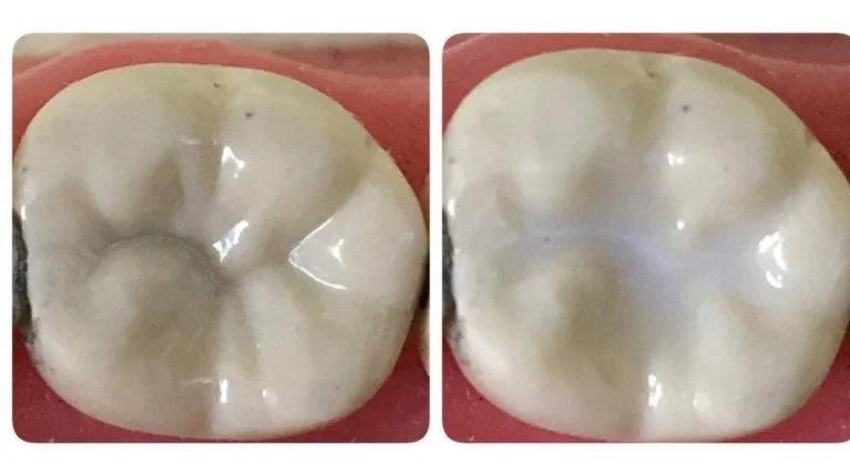 Cleaning: The tooth is cleaned with a rotary brush to remove bacteria. In some cases, we may use a gentle sandblasting technique (enameloplasty) to clear away stains or early signs of decalcification.